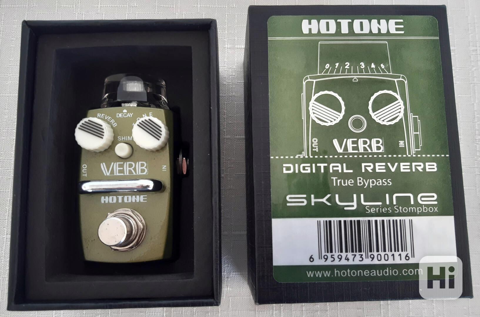 Hotone VERB stompbox je digitální reverb. Umí udělat přirozený hall od malých místností po atmosféru velkého sálu. Reverb, Tone, Decay, Shim. True bypass spínač. Prosvětlený vrchní knoflík v režimu ON a 2 svítící malé knoflíky. Rozměry: 74 mm (D) x 44 mm (W) x 44 mm (H). Hmotnost: 190 g. Používaný pouze krátce doma. Cena 1.399 Kč. tel. 797 864 944 email: patmatvm@email.cz