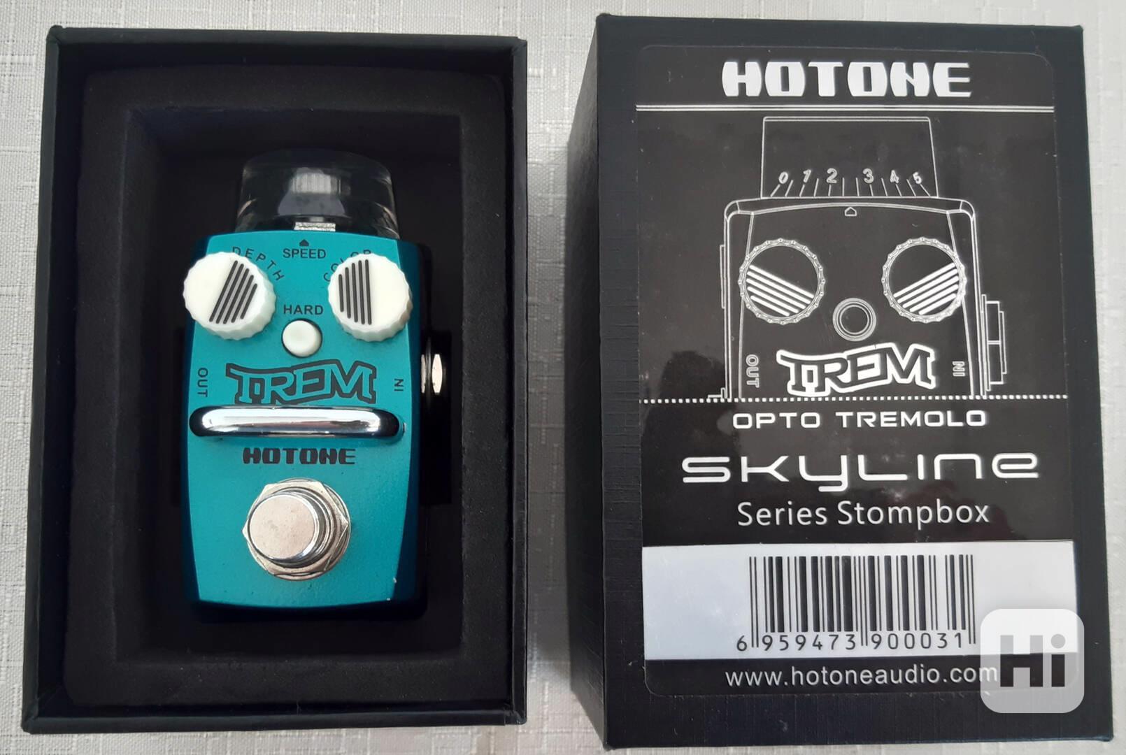 Inspirováno legendárním tremolem z Fender Twin Amp. HoTone Skyline Trem - compact vintage-style opto tremolo pedal pro elektrickou kytaru. Speed control. Depth control. Color control. Hard switch (přidává pulse). LED-status, true bypass, jack input & output. DC input (center negative, 17Ma consumption) Přidaný EQ okruh nabízí více možností pro výslednou úpravu zvuku. True bypass. Rozměry: 74 mm (D) x 44 mm (W) x 44 mm (H). Hmotnost: 190 g. Používaný pouze krátce doma. Cena 1.099 Kč. tel. 797 864 944 email: patmatvm@email.cz